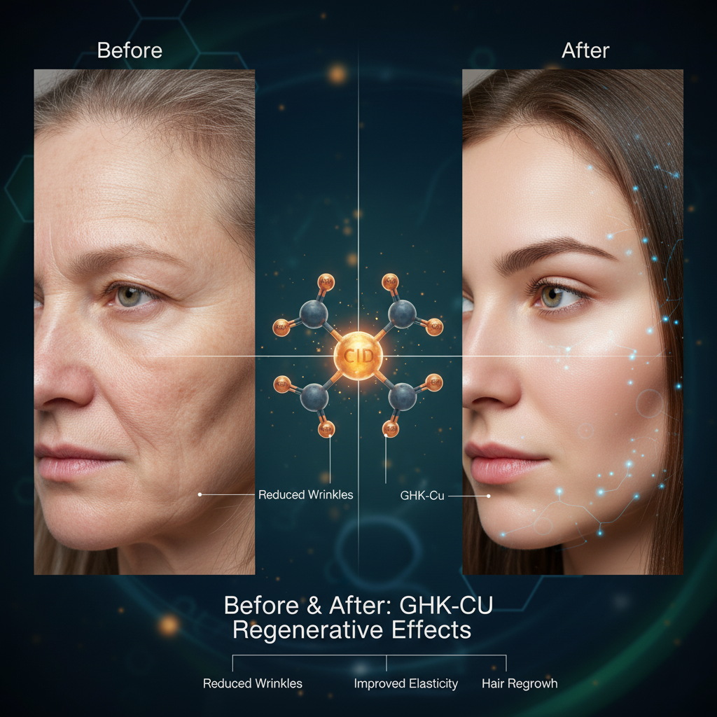 GHK-Cu works by signaling the body to produce new collagen and elastin, which are essential for firm and healthy skin. It also boosts the function of fibroblasts, the cells responsible for tissue regeneration, helping restore youthful elasticity.